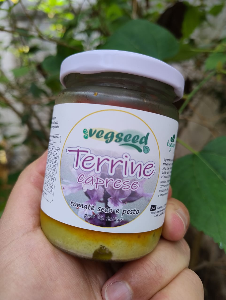 Ingredientes: Castanha de cajú, água, sal moído, ácido lático vegetal, tomate seco, manjericão, semente de abóbora, óleo de soja, probióticos.
